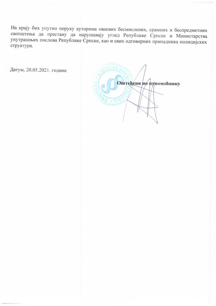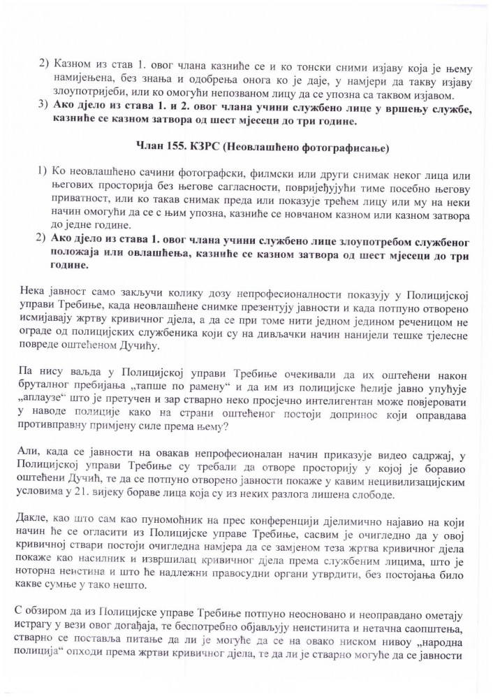 На адресу Херцег телевизије стигао је допис, саопштење за јавност, а које се даје као реакција на полицијска саопштења и емитовања видео садржаја.