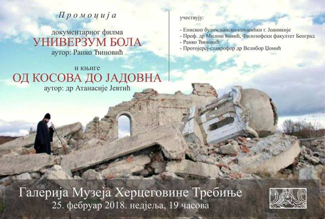 У Музеју Херцеговине ће у недјељу, 25.фебруара, премијерно у Републици Српској, бити приказан документарни филм ''Универзум бола'' аутора Ранка Ђиновића, који говори о страдању Срба на Косову и Метохији.