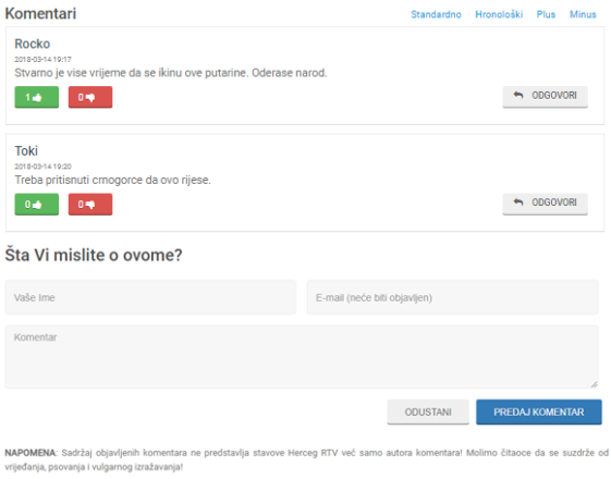 Svoj stav, mišljenje i komentar o aktuelnim temama ostavite anonimno. Nudimo vam i mogućnost ocjenjivanja komentara.