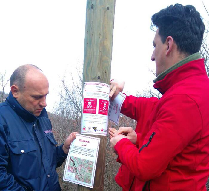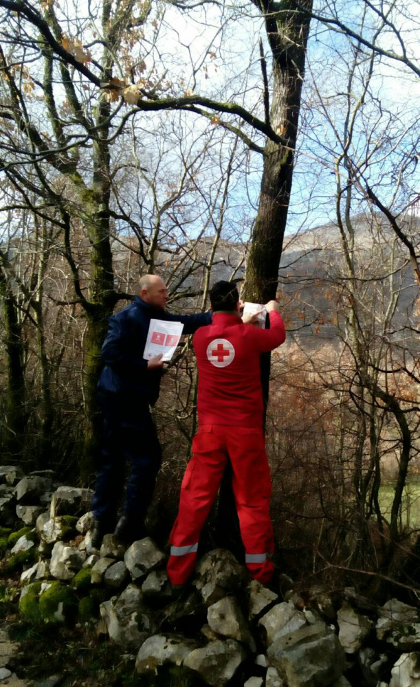 Градска организација Црвеног крста Требиње, у сарадњи са установом "Екологија и безбједност" из овог града, спроводе превентивну акцију постављања плаката са упозорењима на опасност од мина на рутама куда пролазе мигранти крећући се из правца Црне Горе.