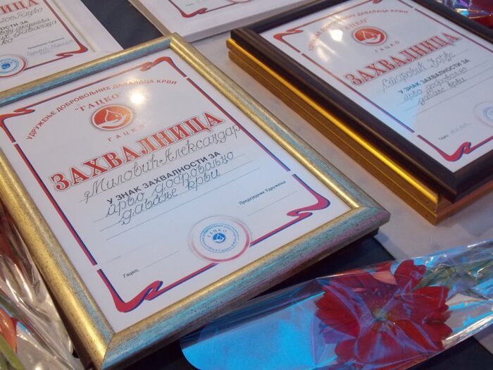 Udruženje dobrovoljnih davalaca krvi „Gacko“ juče je u restoranu hotela „Milica“ uručilo 28 zahvalnica za one koji su prvi put dobrovoljno darivali krv i bili dio jednog humanog čina.