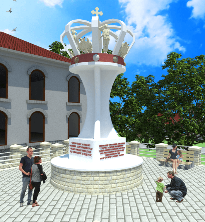 U posao oko završetka biće uključene i specijalističke firme kvalifikovane za izradu figura od bronze, tako da će biti urađena tri bronzana vojnika visine do 180 cm i tri grba Republike Srbije, svaki od njih naizmjenično postavljen u jednom polju krune koja ima 6 krakova.