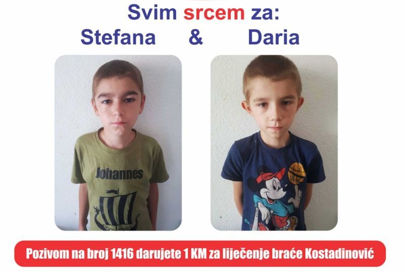 Хуманитарни број 1416 активан је до краја јуна, а позивом се донира једна КМ за лијечење браће Стефана и Дарија Костадиновића из Бањалуке, који болују од Дишенове мишићне дистрофије.