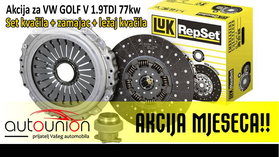 Za sve vlasnike VW Golfa V 1.9 TDI - 77 KW “Autounion” je pripremio specijalnu ponudu - set kvačila + zamajac + ležaj kvačila.