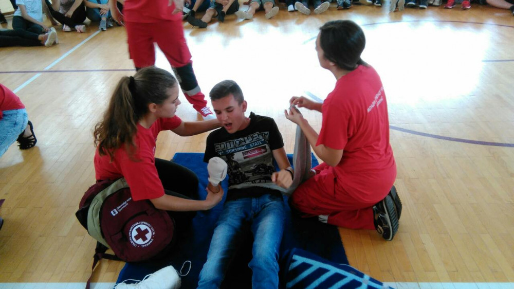 Učenici prvog razreda Medicinske škole i Klub mladih Gradske organizacije Crvenog krsta Trebinje organizovali su danas pokaznu vježbu iz prve pomoći za učenike šestih,sedmih i osmih razreda Osnovne škole "Jovan Jovanović Zmaj".