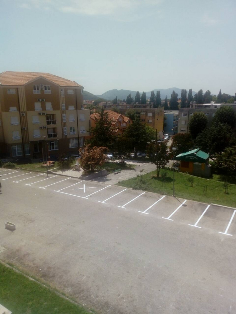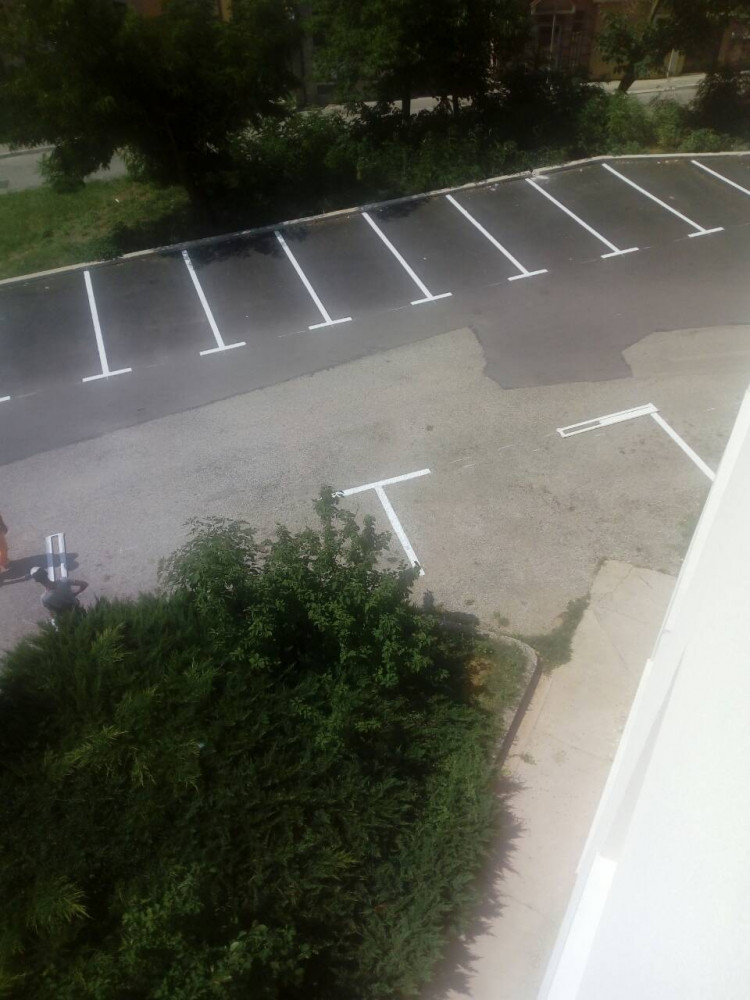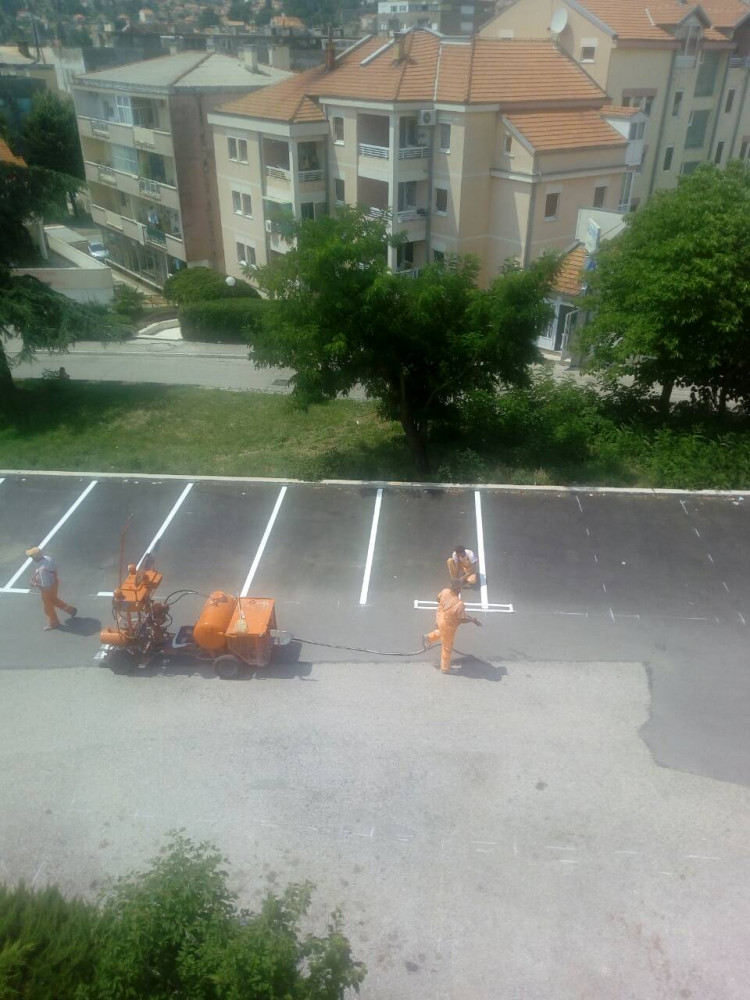 Обиљежавањем сигнализације настављени су радови на уређењу паркинга испред Болнице у Требињу.
