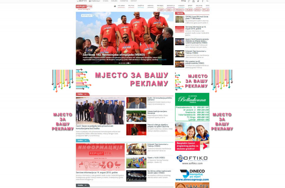 На www.herceg.tv од данас и нове рекламне позиције! Ваш банер на нашем сајту можете добити по специјалним цијенама, а маркетинг тим наше куће, само за Вас, осмислиће примамљиве понуде оглашавања.