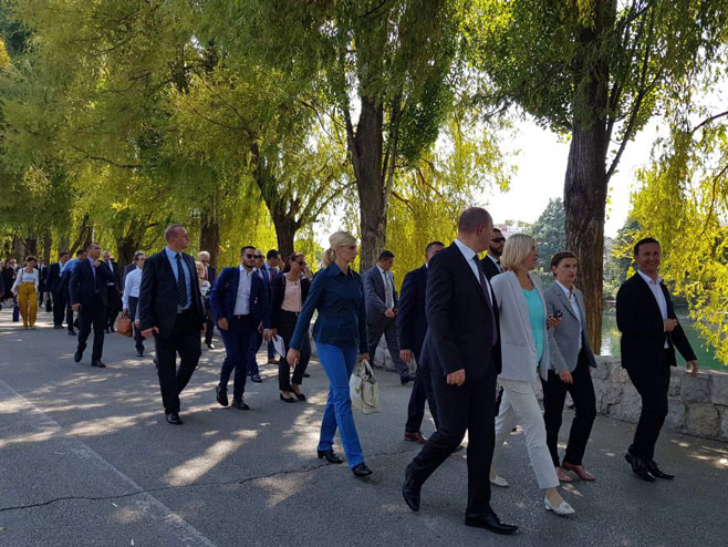 Premijerke Srpske i Srbije Željka Cvijanović i Ana Brnabić, u pratnji gradonačelnika Trebinja Luke Petrovića, prošetale su ulicama grada.