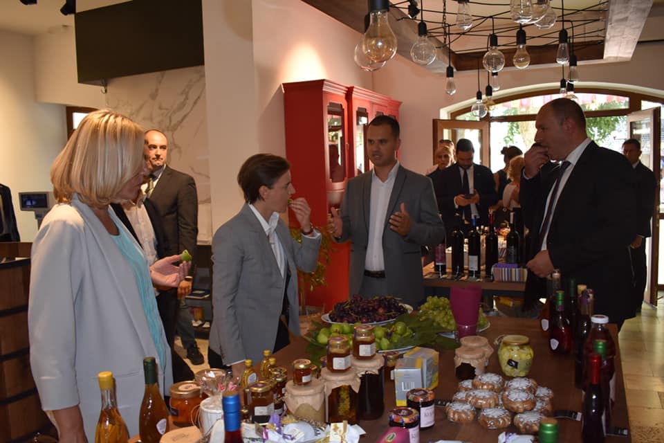 Након свечаног отварања вртића, премијерке Српске и Србије посјетиле су "Херцеговачку кућу" у пратњи градоначелника Требиња Луке Петровића.