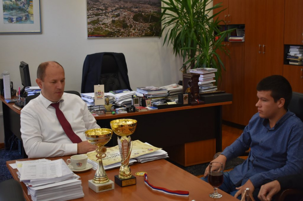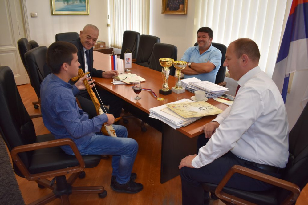 U Gradskoj upravi Trebinje upriličen je prijem za mladog guslara iz Trebinja Mitra Višnjića.