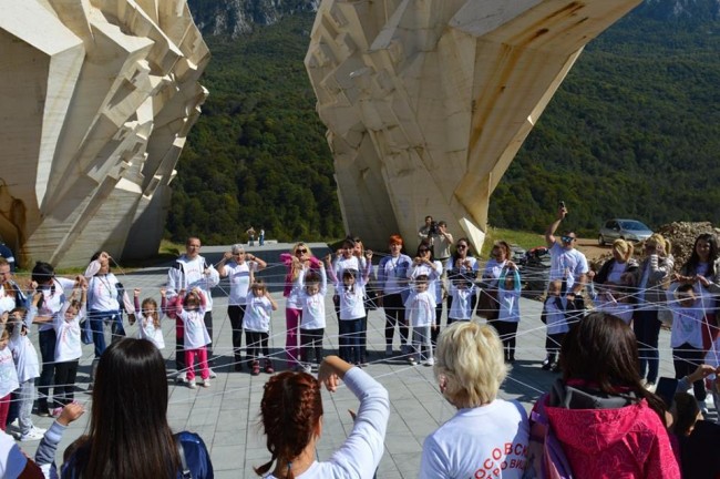 На платоу испред Споменика Битке на Сутјесци дјеца и родитељи из два вртића размотали су клупко и уз пјесму Бранка Коцкице “У свијету постоји једно царство” симболично исплели мрежу пријатељства, обећавши да ће наставити да је шире и јачају.
