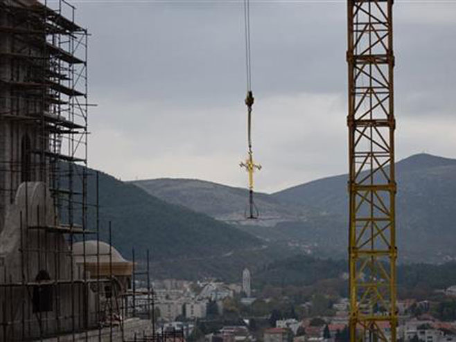На куполе Саборне цркве Свете Тројице у Мостару данас су дигнута два позлаћена крста, од укупно седам, који ће красити овај храм и сијати над Мостаром поново након 26 година.