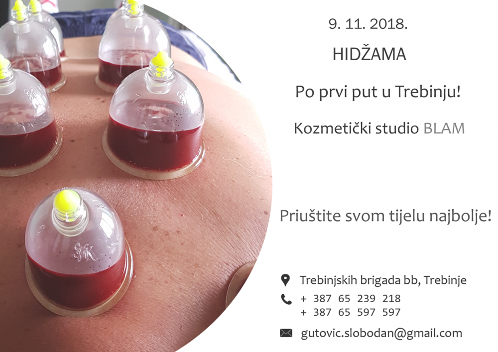 Hidžama kao jadan od najzastupljenijih medicinskih tretmana u svijetu, sve je prihvaćenija i kod nas. Riječ je o potpuno bezbolnom tretmanu, koji se izvodi jednokratnim i putpuno sterilnim instrumentima. Spada u regulatorne medicinske metode kojima se naš organizam dovodi u stanje balansa i ravnoteze. Otpuštanjem toksina organizam sam vraća svoje odbrambene funkcije, a imunitet postaje jači.
