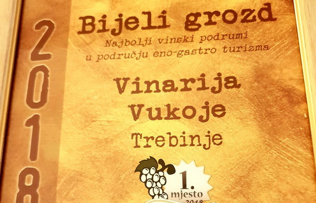 „Бијели Грозд“ и прво мјесто за најбољи вински подрум у подручју ено-гастро туризма, дођељује удруга за културу стола Г.Е.Т. која прати рад и успјехе винарија на пољу винског туризма и све остале активности које доприносе развоју винске културе. Подруми Вукоје 1982 са својим угоститељско-туристичким објектима, „Винска Галерија“, „Вилла Пегола“ и „Виноградрева кућа“ је већ одавно уцртан у свим туристичким и винским рутама, а то доказују утростручени бројеви винских ходочасника и хедониста који су уживали у разноврсности понуде и врхунским винима из овога најнаграђиванијег подрума у регији.