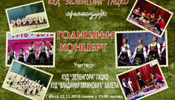 Културно – умјетничко друштво "Зеленгора" из Гацка у суботу, 22. децембра организује годишњи концерт.
