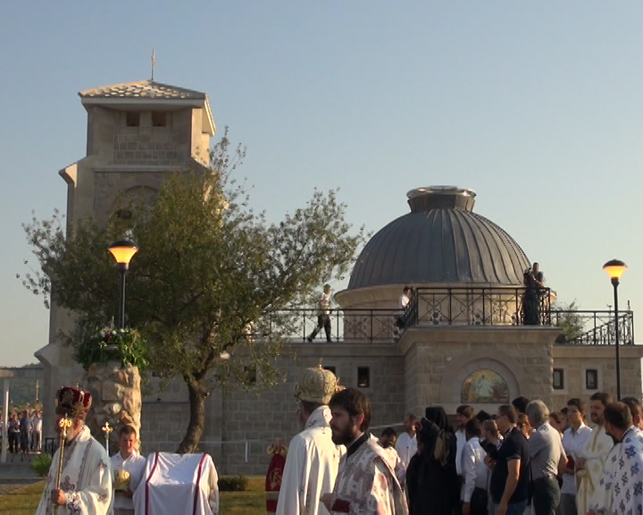 Petomjesečna Sara Dragićević danas je primila Svetu tajnu kršenja u novoosveštanom Hramu Hristovog Vaskrsenja u Prebilovcima, izgrađenog u pomen 4 000 novohercegovačkih stradalnika.