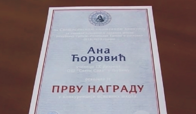 Ученица деветог разреда Основне школе “Свети Сава” у Љубињу Ана Ћоровић освојила је прву награду, а ученик Гимназије “Филип Вишњић” у Бијељини Војислав Дурмановић трећу награду на Светосаском књижевном конкурсу за ђаке из Србије, Републике Српске, Црне Горе и расијања.