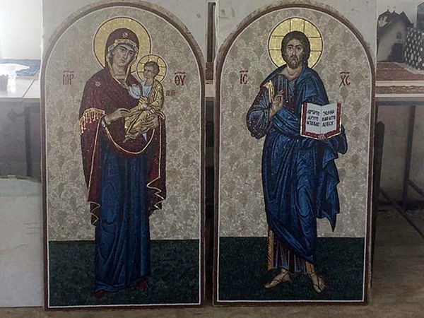 Ikonostas, koji je nekoliko mjeseci izrađivao trebinjski majstor za ikonostase, klesar Dalibor Rosandić, postavljen je u subotu, zajedno sa mozaicima koje je darovao Đorđe Mijajlović, hercegovački zet, a izradio ih je njegov brat Aleksandar Mijajlović.