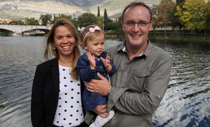 “Радили смо заједно и тако смо се упознали. Супруга сада не ради, брине се о кћеркици, а вријеме док сам ја на броду, проводи мало у Требињу, мало у Бразилу. Некад она и Валентина плове са мном, јер је сваком члану посаде дозвољено да поведе на брод неког себи блиског”, појашњава Бојан.