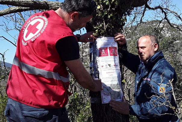 „Ова превентивна акција је покренута због примијећеног повећаног кретања миграната у овим подручјима. Плакате упозорења на опaсаност од постојања минских поља штампао је Међународни комитет Црвеног крста на енглеском и арапском језику. Мишо Памучина, координатор за деминирање испред ЈУ ‘Екологија и безбједност’, изашао нам је у сусрет како би плакате поставили на потребна мјеста“, кажу у требињском Црвеном крсту и додају да им је помоћ у акцији, уступањем возила, пружила и Територијална ватрогасна јединица Требиње.