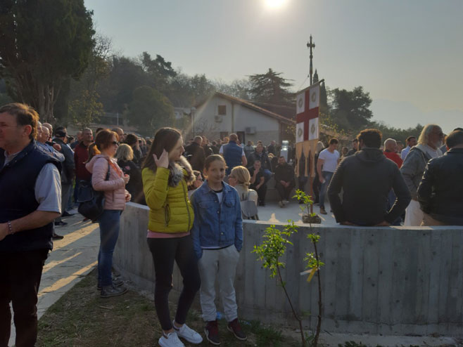 Veliki broj vjernika sinoć se okupio ispred krstionice, s namjerom da molitvom sačuva svetinju, a svenoćno bdenje služio je Njegovo preosveštenstvo episkop dioklijski Metodije sa sveštenstvom.