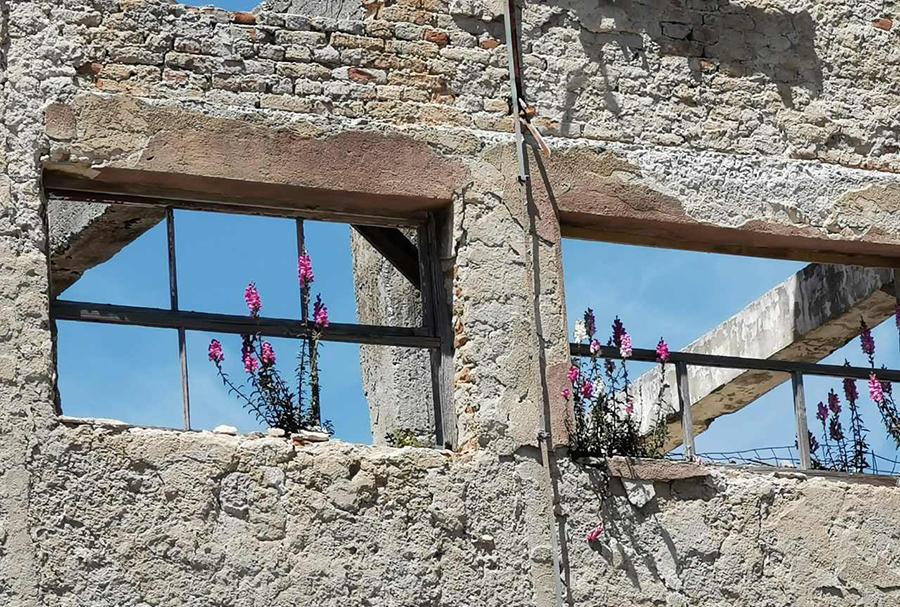 Umjesto bravarije i stakala nekadašnje prozore krase zijevalice, biljke koje rastu u siromašnom tlu i pukotinama stijena.