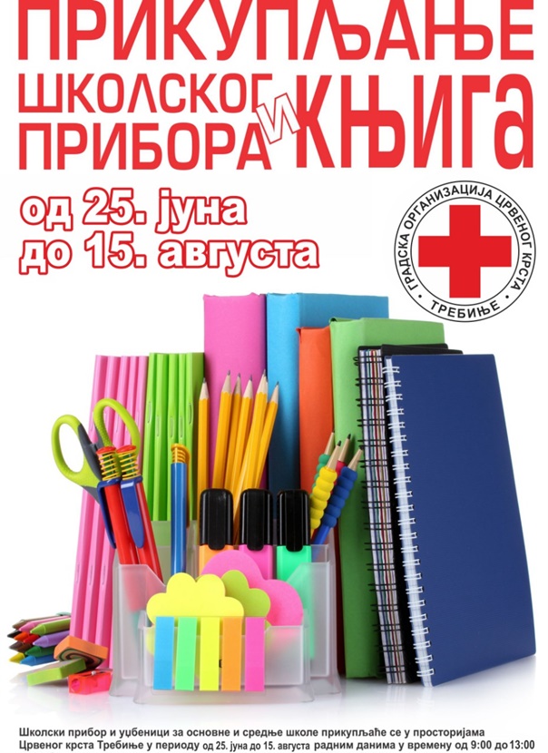 U prostorijama trebinjskog Crvenog krsta do 15. avgusta biće prikupljani udžbenici i školski pribor za osnovne i srednje škole.