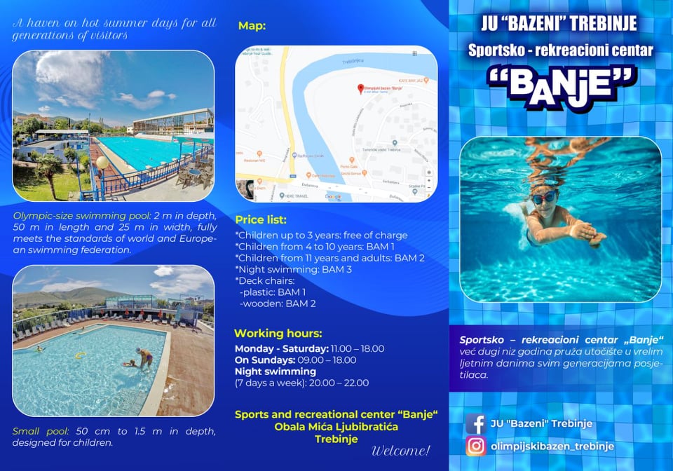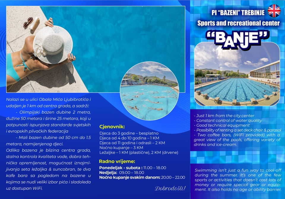 Za sve sugrađane koji ne vole da putuju mnogo u potrazi za osvježenjem u vrelim ljetnim danima, tu je Olimpijski bazen "Banje", kupalište sa tradicijom, koje je tu godinama za sve Trebinjce, ali i goste...