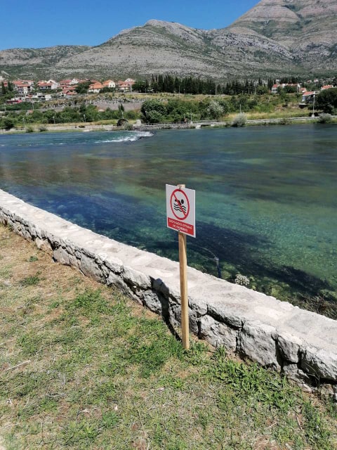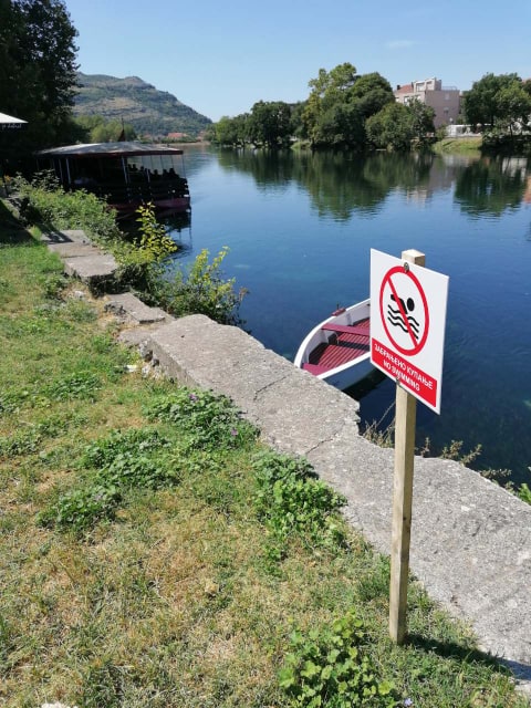 Zbog visokog vodostaja rijeke, a na inicijativu nadležnih iz Hidroelektrana na Trebišnjici, na više lokacija u gradu postavljene su table upozorenja kupačima da je kupanje u Trebišnjici zabranjeno, saopšteno je iz JU „Ekologija i bezbjednost“.