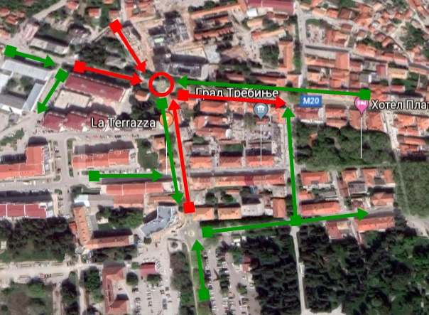 Главном улицом према улици Војводе Степе Степановића возила ће саобраћати несметано, уз коришћење супротне траке на мјесту радова, док ће у супротном смјеру на кружном току код Палате правде саобраћај бити преумјераван у Његошеву улицу, са укључењем у главну улицу код мале поште.