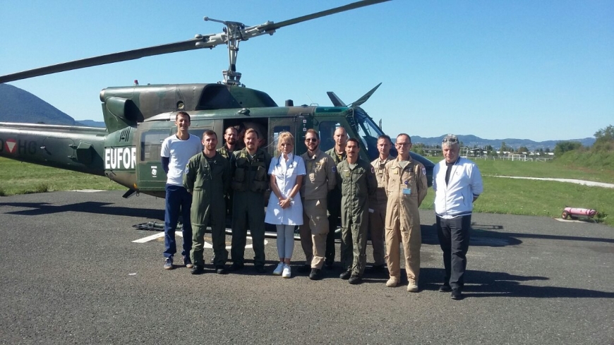 За пола сата хеликоптерска санитетска екипа је стигла у Крушевљане и након консултација са невесињским љекарима одлучено је да се пацијенткиња одмах пребаци за Сарајево. Тако су се у пратњи унесрећене жене нашли заједно невесињски и аустријски љекари. Када се хеликоптер спустио на фудбалски терен у близини сарајевске болнице наступила је још једна драма, пошто се стање жене додатно погоршало и срце је престало да куца. Невесињски љекари су успјешно урадили реанимацију и Сарајки дали прилику да се бори за живот.