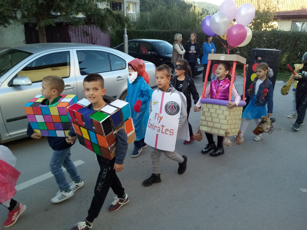 U reciklažnom maskenbalu Osnovne škole „Sveti Sava" ulicama Foče šetali su grozdovi od balona i od korneta za jaja, semafori, roboti i magične kocke od kartonskih kutija, jesenje lišće i jarko sunce, blješteće rakete od folije i mnoštvo drugih kreativnih izraza djece i njihovih nastavnika i vaspitača.