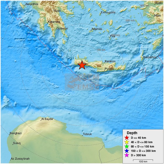 Prema podacima EMSC - centra za objavljivanje i upozorenja od zemljotresa, potres je bio na svega dva kilometra dubine u 317 klometara od Atine, 50 kilometara od Ćanije, i 14 kilometara od Palaiohra.