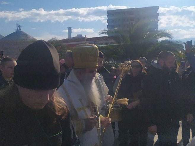 Prije litije, mitropolit Amfilohije služio je Svetu arhijerejsku liturgiju u Hramu Svetog Jovana Vladimira u Baru.