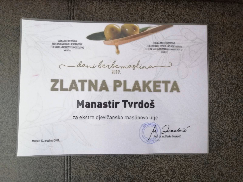 "Osim kvaliteta vina, nadaleko je prepoznat i kvalitet maslinovog ulja koje se proizvodi ovdje u Tvrdošu, a za to smo dobili i neka priznanja", priča Porfirije.