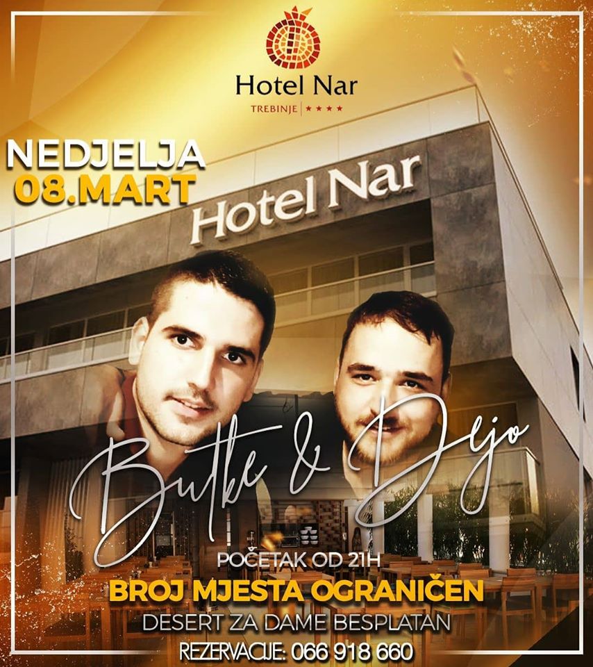 Hotel Nar odlučio je da obraduje sve pripadnice ljepšeg pola, pa je za 8. mart pripremio dobru zabavu uz duo Butke & Dejo.