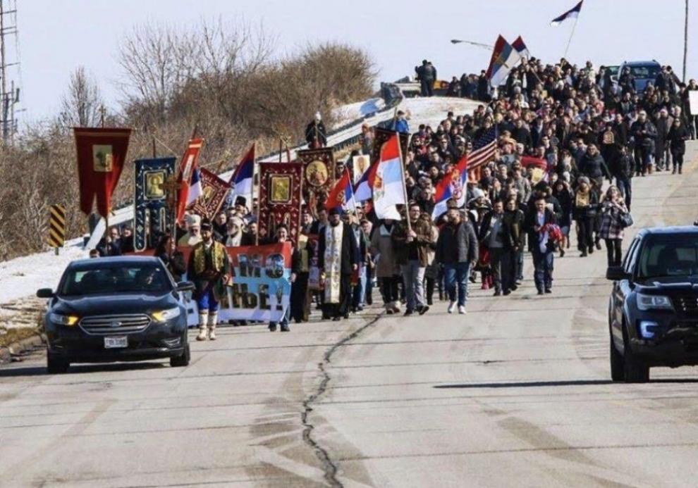 Прва литија подршке у Сјеверној Америци кретала се од Цркве Светог Саве у Мерилвилу до Цркве Светог Илије удаљене око шест километара.