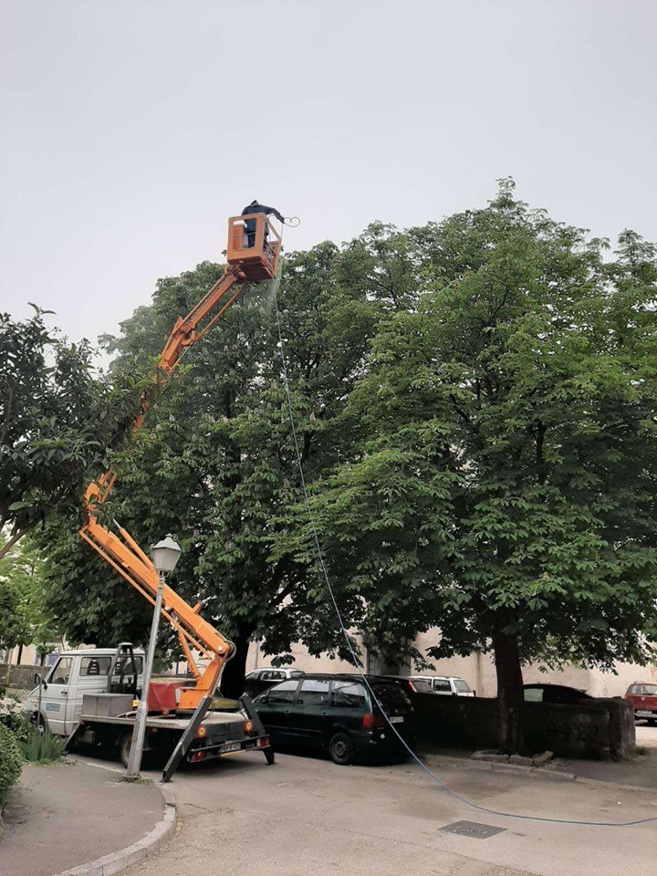 Radnici Komunalnog AD jutros od 7 časova rade hemijsku zaštitu stabala platana i kestena.