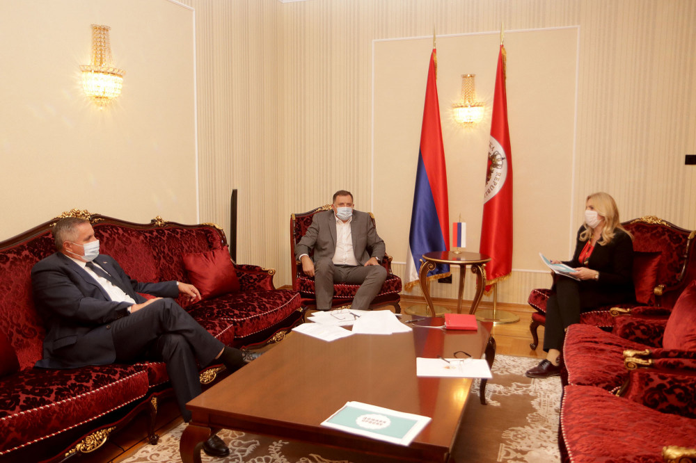 Predsjednik Republike Srpske Željka Cvijanović, predsjednik Vlade Republike Srpske Radovan Višković i srpski član Predsjedništva BiH Milorad Dodik razgovarali su danas o podršci u oblasti turizma i hotelijerstva kroz izdavanje turističkih vaučera, kojima će se subvencionisati dio troškova smještaja domaćih turista na turističkim destinacijama u Republici Srpskoj.