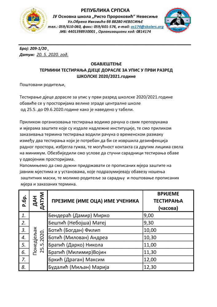Nevesinje: Termini za testiranje djece dorasle za upis u prvi razred