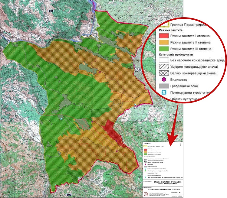 Cjelokupono područje Parka prirode „Orjen“, kako je predloženo odlukom, biće podijeljeno na zone sa tri različita režima zaštite.