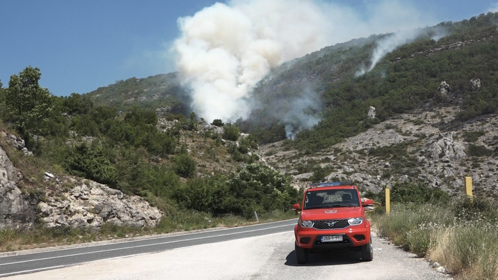 Prema riječima komandira Teritorijalne vatrogasne jedinice Trebinje Spasa Rosića, već sada je požarna linija kilometarska, ali na svu sreću vatra ne prijeti domaćinstvima i objektima.