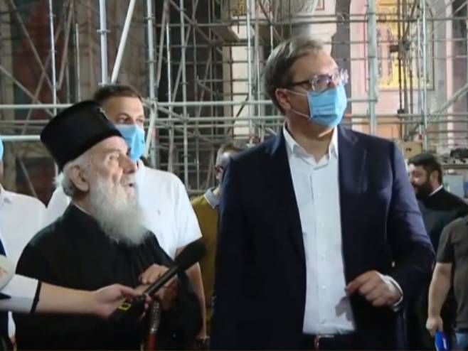 Предсједник Србије Александар Вучић и патријарх СПЦ Иринеј обишли су данас радове на унутрашњем уређењу Храма Светог Саве, који би, према плану, требало да буду завршени у октобру, а Храм ће бити један од три највећа у православном свијету и моћи ће да прими око 10.000 вјерника.