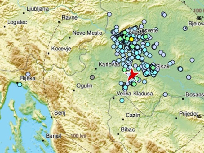Hipocentar je bio 17 kilometara jugozapadno od Petrinje, na dubini od dva kilometra.
