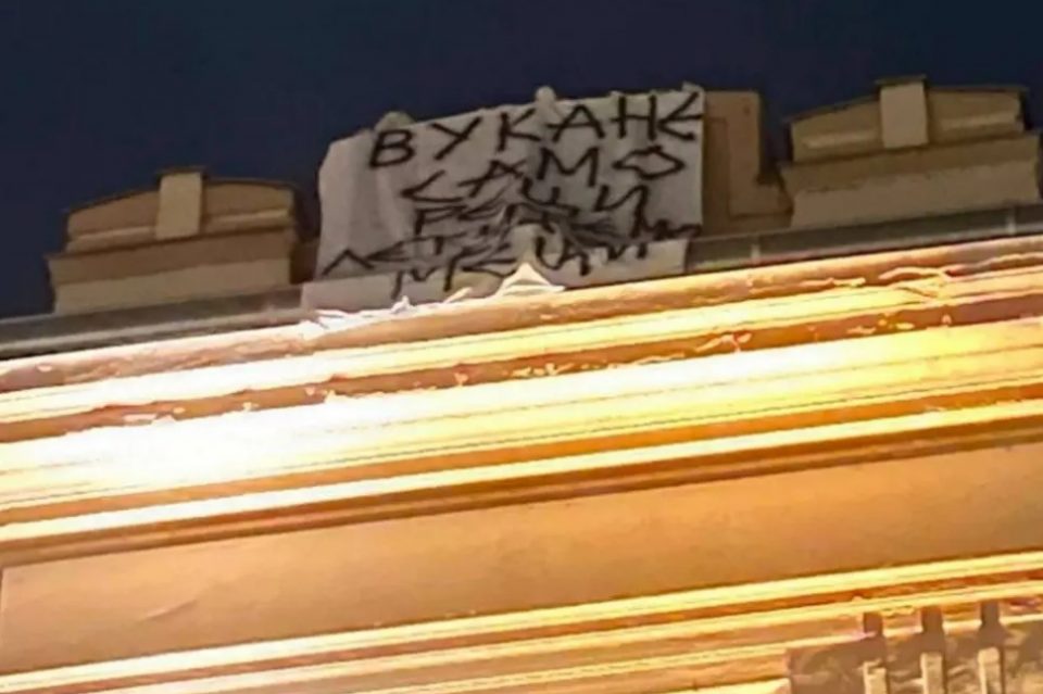 Jutros je na zgradi Gradske uprave u Trebinju osvanuo transparent podrške Nebojši