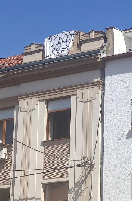 Onome ko je postavio transparent šaljemo poruku da ovakve i slične egzibicije izvodi na svojoj zgradi/kući. Trebinje je grad turizma, kulture, grad pjesnika Jovana Dučića i nećemo dozvoliti da se na ovakav ili sličan način pravi ruglo od našeg grada. Ovakvim transparentima nije mjesto u našem gradu, bez obzira kome se podrška daje. Da li treba da se prisjećamo poteza Slavka Vučurevića, treba li Trebinju, gradu koji svakodnevno vrvi od turista, ovakva sramota !?