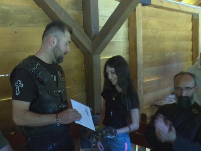 - Одлучили смо да овогодишњу вожњу посветимо младој глумици Биљани Чекић јер је улогу одиграла феноменално и читав свијет је то видио. Ми смо дошли овдје да јој уручимо поклон ваучер на којем она може да одреди датум, а то је обилазак Москве, гдје ће је дочекати Ноћни вукови у Русији - рекао је Горан Тадић, предсједник Одјељења Ноћних вукова у Републици Српској.