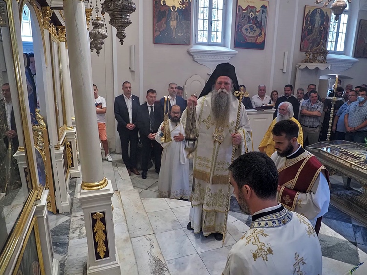 Na praznik Prenosa moštiju Svetog arhiđakona Stefana, slave Herceg Novog, u hramu Vaznesenja Gospodnjeg na Toploj, juče je odslužena sveta arhijerejska liturgija, kojom je načalstvovao izabrani mitropolit Crnogorsko-primorski Joanikije, uz učešće episkopa Zahumsko-hercegovačkog Dimitrija i sasluženje velikog broja sveštenika.