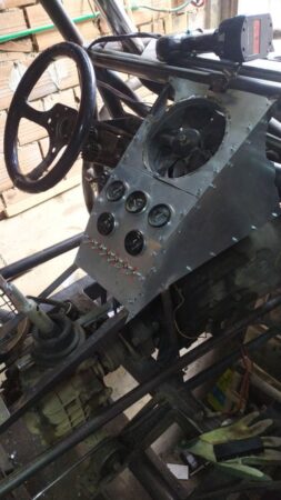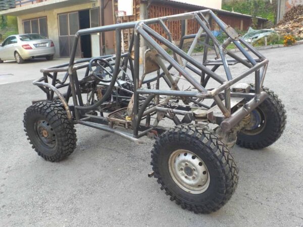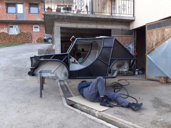 Radivoje samo zna kako je uspio da ispresavija masivne željezne cijevi da bi dobio skladne linije blatobrana i šasije koje vozilu daju atraktivan sportski izgled, ali i povećavaju bezbjednost vožnje, imajući u vidu namjenu vozila.