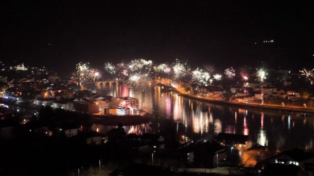 Уз пјевање „Звездиних“ и пјесама о Републици Српској „Делије“ су на огради моста запалиле педесетак бакљи које су у кишној ноћи створиле величанствен призор, а приређено је и 85 ватромета на подручју града.